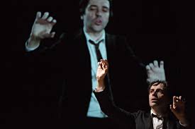 Poitrenaux en figure de proue pour cette performance de haute voltige, délicate, fine, ciselée et vif argent comme son regard, ses directions dans l'espace, ses "petits bougés", si tendres, sa mobilité extrême parure de son corps vibrant. Envergure des bras, balancés de sa danse ondulante, très sensuelle, traversée par les mots, la syntaxe de Cadiot. Le texte et la musique alternent ou ne font qu'un: on éprouve l'écoute des rythmes avec acuité et concentration. Il se meut avec la grâce d'un oiseau sur les ondes et les ricochets aléatoires du hasard en font une surprise constante, dans le jeu, dans l'astuce et l'humour distancé d'un phénomène, d'une "créature" androgyne fascinanteIl Il dialogue avec son double surdimentionné, en vidéo dans la pénombre, joue avec malice comme un jongleur de mots, fait silence, en apnée, ou pause salvatrice. Un comédien au service d'un texte riche et nourri de sensualité, dans une mise en espace chorégraphique, sobre et convaincante.Un oiseau de nuit, à l'envergure étonnante pour un envol au dessus des nids de coucous.